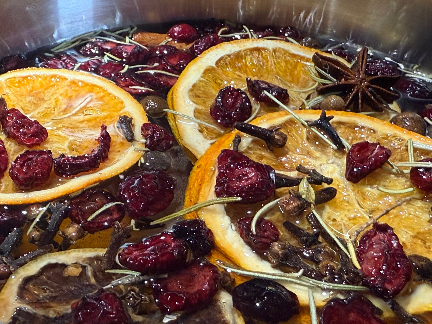 Each Spiced Citrus Cheer blend contains premium dried ingredients: orange and lemon slices, cranberries, rosemary, whole cinnamon sticks, whole cloves, allspice berries, and star anise.